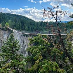 Die zwei Hängebrücken in Golden sind um einiges höher und schmaler als die Hängebrücke in Vancouver. Dafür auch weniger frequentiert, sodass man mehr Zeit zum Genießen der Aussicht hat.
