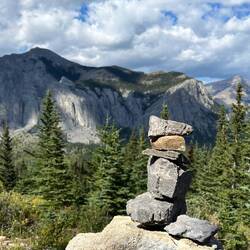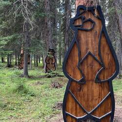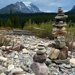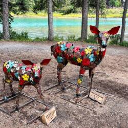 Auf dem Weg zu den nahegelegenen Bow Waterfalls konnten wir dann noch unsere täglichen Schritte (immer mindestes 15.000) sammeln und einige Kunstobjekte im Park anschauen.