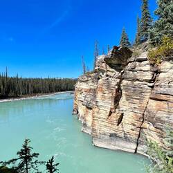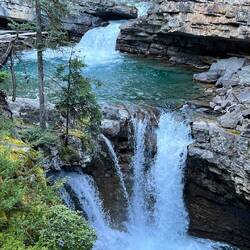 Die ersten beiden Stopps galten direkt wieder Wasserfällen - den Spahats Creek Falls (75 Meter hoch) und den Dawson Falls (nur 18 Meter hoch - dafür aber stolze 90 Meter breit). Unser Eindruck: An Wasserfällen in allen möglichen Höhen und Breiten mangelt es Kanada jedenfalls genauso wenig wie an Bäumen 😊