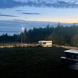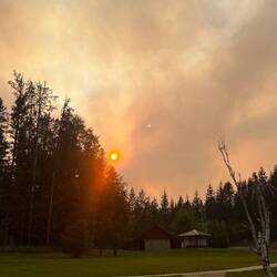 Auf der 2,5 stündigen Fahrt nach Revelstoke konnten wir einige Löschflugzeuge beim Wasseraufnehmen aus Seen und Flüssen beobachten, haben wunderschöne Natur und sehr tief hängende Wolken gesehen und auch ordentlich Regen abbekommen. Geregnet hat es dann fast die ganze Fahrt über und bestimmt auch die Hälfte der Nacht - überfällig und dringend notwendig. Bei Ankunft im “Revelstoke RV & Cabin Resort” war es bereits 20 Uhr und stockdunkel. Wir wurden im Office sehr nett empfangen und direkt über aktuelle Bärensichtungen und entsprechende Vorsichtsmaßnahmen informiert. Zudem wurde uns mitgeteilt, dass der „fire ban“ gelockert wurde und Lagerfeuer somit nun wieder erlaubt sind - und tatsächlich konnten wir bereits einige Lagerfeuer auf dem Campingplatz entdecken.Leer más