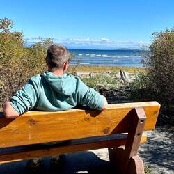 In Nanaimo angekommen war das Wetter dann mittlerweile ganz gut und so ging es erstmal zum nahegelegenen, weitläufigen Sandstrand - dem „Rathtrevor Beach Provincial Park“. Besonders im Sommer wohl perfekt zum Baden geeignet - im späten September konnte man hier jedoch niemanden mehr schwimmen sehen. Neben den vielen angespülten Baumstämmen gab es hier auch unzählige Muscheln und Krebsskelette zu sehen. Wir sind also eine ganze Zeit lang den Strand entlang gelaufen und haben das Urlaubsflair genossen.