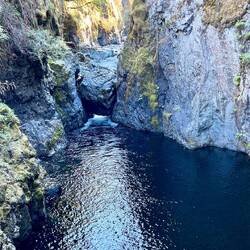 Zum Mystic Beach Trail kann ich mit einigen Tagen Abstand nun doch etwas Nettes sagen: Die unglaublich verwurzelten Bäume haben uns den ganzen Waldpfad entlang viel mehr an Avatar erinnert, als der Avatar Grove selbst. Hier haben wir viele, viele Wurzeln sehen können, die verschiedene Bäume miteinander verbunden haben. Schön war auch die wackelige Hängebrücke und die Höhlen am Strand sahen wirklich beeindruckend aus. Ganz sicher ein toller und geschützter Ort zum Zelten.