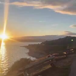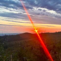 Auf der weiteren Strecke konnten wir an einer Ausbuchung an der Straße anhalten und den Sonnenuntergang bestaunen. Das Besondere: Die Straße war über der geschlossenen Wolkendecke - es waren also unter uns und über uns Wolken, dazwischen die Sonne. Leider auf den Bildern nicht allzu gut zu sehen, aber wirklich wunderschön.