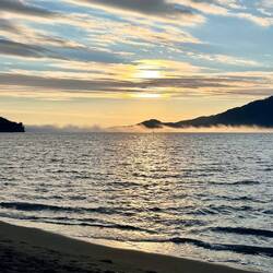 Wieder heil unten im Ort angekommen haben wir einen Abstecher zum dortigen Campground direkt am Meer gemacht. Dort konnten wir einige Leute beim Angeln beobachten und außerdem seeeehr tief hängende Wolken in die Bucht ziehen sehen. Leider war das Office nicht mehr besetzt, sodass wir hier keinen Stellplatz buchen konnten und weiterfahren mussten.