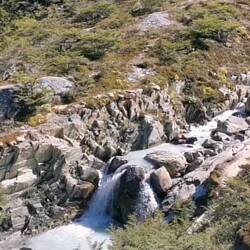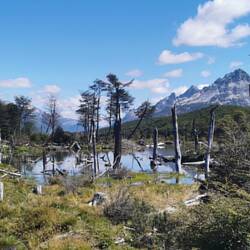 Nous nous amusons dans les passerelles en bois, les petits pas japonais et autres racines nous permettant d'esquiver la boue de ces derniers jours pluvieux. Nous franchissons ainsi une forêt de Lengas, contournons un barrage de castors (véritable fléau ici car c'est une espèce invasive introduite par l'homme et destructrice de l'écosystème) pour terminer au bord de la lagune. Belle entrée en matière et bonne augure pour la suite...