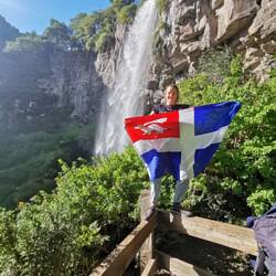 Plus loin sur la route, nous sommes intrigués par la quantité de voitures stationnées sur le bas côté. En tant que bon pigeons, nous faisons de même et allons découvrir de quoi il en retourne 😝. Après quelques kilomètres de marche, nous arrivons effectivement au près de la magnifique cascade ñivinco. Mimi sera bien le seul à oser y faire un plongeon sous le regard médusé des frileux argentins qui nous entourent 🩳.