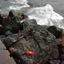 Nous n'y passerons qu'une nuit 🌙 et à 7h du matin, rebelotte direction San Cristóbal pour nos deux ultimes journées aux Galapagos. Bien fatigués et le temps se gâtant, ce dimanche sera pour nous l'occasion de souffler. Nous nous rendrons à la plage de la Loberia après la sieste et profiterons d'un snorkeling frileux mais heureux en compagnie d'une belle tortue 🐢, d'une raie pastenague et même de quelques lions de mer 🦦.