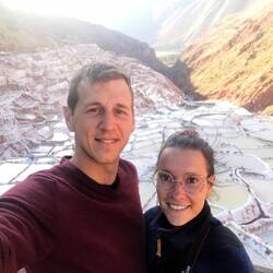 En fin d'après-midi, nous rejoignons les salines de Maras🧂, un site impressionnant car perdu entre deux montagnes. Ici, quelques milliers de bassins construits à flan de falaises permettent la récolte du sel depuis l'époque des incas mais il est aujourd'hui impossible de s'en approcher afin de préserver la beauté et la blancheur du lieu🙅♀️.