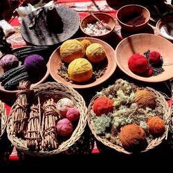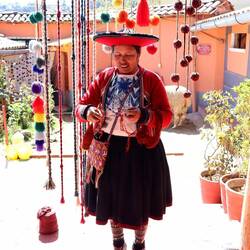 Nous rencontrons Paulina qui, depuis ses 7 ans, apprend à créer ponchos, châles, écharpes, bonnets et autres vêtements avec de la laine d'alpaga, de lama 🦙ou de brebis. La laine est d'abord lavée puis transformée en fil et en pelotes 🧶. Les teintures utilisées sont naturelles et chaque couleur a sa recette. Par exemple, elle utilise la cochenille du cactus dont le sang permet d'obtenir un rouge vif 🌵. Ceci mélangé à du citron 🍋, de l'eau ou une pierre fait varier la couleur passant du rouge au fushia.