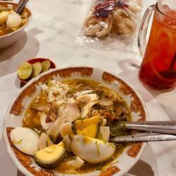 Abends in Malang lassen wir den Tag bei Soto Ayam mit Biasa Telor und Es Telar (Kokoseis mit Avocado, Kondensmilch, Jackfrucht und vielem mehr - sehr verrückt!) ausklingen.