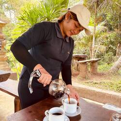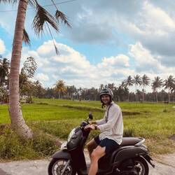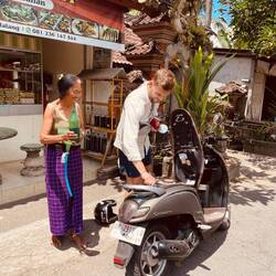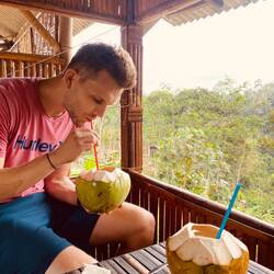 Guten Morgen aus Ubud! Wir starten in den Tag mit einem leckeren Frühstück und einem Kaffee. ☕️ Danach leihen wir in unserem Guesthouse einen Scooter aus und machen uns durch die hektischenBaca lagi