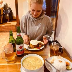 Nachdem wir in unserem Guesthouse unsere Füße vom Dreck des Tages befreit haben, machen wir uns auf den Weg zu Bakso Pak Otong. Hier gibt es super lecker Bakso (Suppe mit Nudeln undBaca lagi