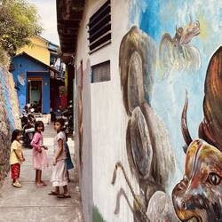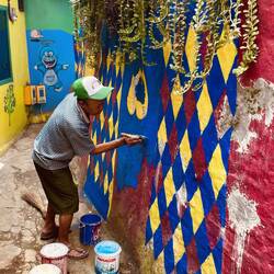 Danach schlendern wir durch Kampung Warna Warni, das Regenbogendorf 🌈 der Stadt - die Häuser und Gehwege sind in knallig bunten Farben gestrichen (Eintritt 5.000 IDR p. P.).