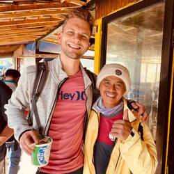 Wir packen uns dick ein, futtern ne Banane und schließen pünktlich 3 Uhr die Tür hinter uns. Den offiziellen EingangBaca lagi