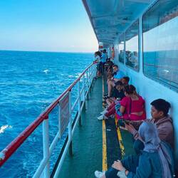 Wir überstehen die Nacht überraschend gut! Dank Oropax hat uns der laute Motor nichts an und auch die Schunkelei tut uns nichts, Fine findet es sogar angenehm einschläfernd. Ich fühle mich eherBaca lagi