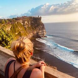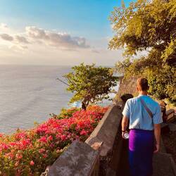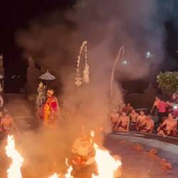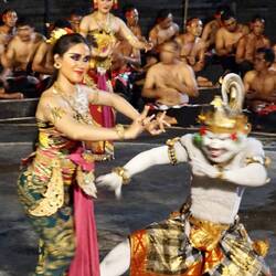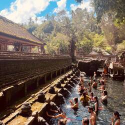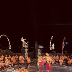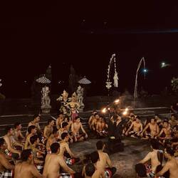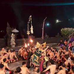 Vom Aussichtspunkt düsen wir zum Uluwatu Tempel, um zeitig genug da zu sein, damit wir Karten für den Kecak Firedance bekommen. Nach Anstehen in der Sonne und ziemlichem Gedränge, ergattern wirBaca lagi