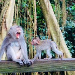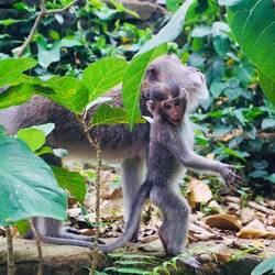 Nach einem kalten Bierchen geht es in den nahegelegenen Monkey Forest. Bevor wir den Wald betreten, packen wir alles in die Tasche oder befestigen es an unserem