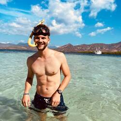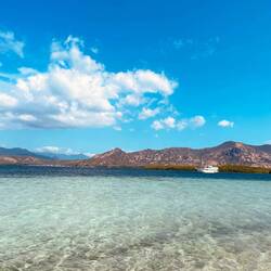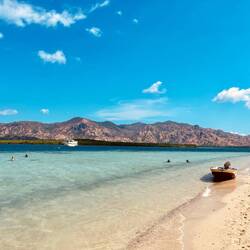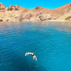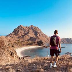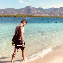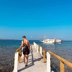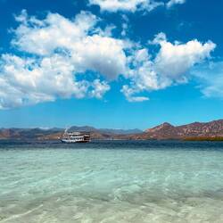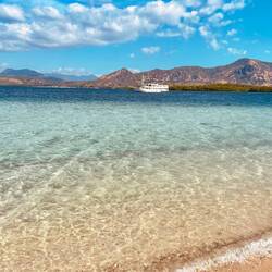 Unser nächster Halt ist der Pink Beach auf Padar Island - Hannes Worte dazu: „Ich hab noch nie so krass blaues klares Wasser gesehen“! Es ist wirklich atemberaubend - die fein gemahlenen rotenBaca lagi