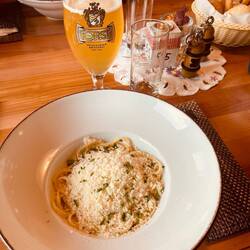 Wir erreichen unser heutiges Ziel Weißenbach (1335 m) und kehren im Murrerhof ein. Bei Spuma (italienischer Almdudler), Zirbenschnaps und Aperol lassen wir es uns gut gehen.