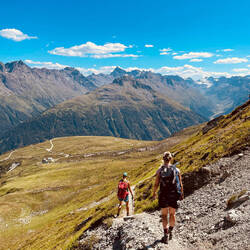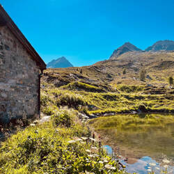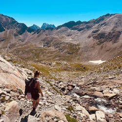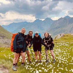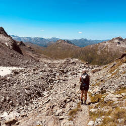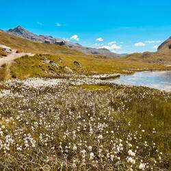 Es folgt ein idyllischer Abstieg über blühende Alpenwiesen und Moore mit Wollgras und Murmeltieren. Wir springen über den Albonabach und erklimmen den letzten Anstieg, wo die schöne HeilbronnerEn savoir plus