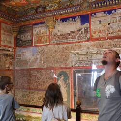 4.4.2025. We went for a walk today, Mel found a walking tour of Udaipur online which looked easy enough. Already had a couple spots ticked off from the day before. Stopped near the palace for some brekky, and continued on. You get to take in more of the city when you walk. In a Tuktuk, of which we were offered a lot of rides in, you go past too fast, you miss things. I'm sure we still miss stuff while walking, but less I think, and I like it. You see buildings from different angles, you see more shops and what's in them, you see more of the people. You engage with people, whether you want to or not. We've had people genuinely interested in talking to us and fascinated with what we are doing, some people just want a picture, and some seem interested but just want to sell you something. I'm getting better at dealing with all of it. Mel is loving Udaipur, they're a photographer at heart and are in their element here. There's a lot going on here, with palace's and lake views and old buildings. Not to mention the temple festival last night, Mel is loving it. We kinda wish we had more time here, but we'll fit in what we can. We'll probably say that about the next place too, and the next and so on and so forth. In the end 1 year won't be enough I'm sure. In the afternoon we visited Bagore ki Haveli, another palace on the lake, turned into a museum also. There were paintings and sculptures, some exhibits on how day to day life was and a turban museum. We headed back to our room for some rest and to refresh a bit before heading back to Bagore ki Haveli again in the evening for another dance show. The show was similar to the previous nights, but held in a courtyard inside the palace. While the palace created a nice venue for a performance, we felt it wasn't as memorable of a performance as last night's. There was also a small one man puppet show, which seemed to be a token effort, and was not nearly as good as the previous nights. We enjoyed the show, got some dinner after at a restaurant I found and headed back.