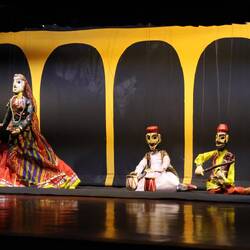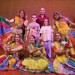 3.4.2025. Managed to sleep a fair bit of the night, woke up stuff and sore tho. Em had been up a bit and was now back to sleep, had another spew just before we got off, poor kid. Tuktuk to our guesthouse in Udaipur, can't check in yet but we can leave our bags there. We walked down towards the lake and found a restaurant for smoko. Had a bit of a look around until it was time to check in. After checking in, we headed for the palace. First thing you see coming in is two huge elephant sculptures. We started our visit, plenty to look at. Paintings, sculptures and just the walls. Plenty of walls painted and decorated. Lots of old weapons on display. Plenty of stained glass and windows to look out of. We thought there would be a light show at the palace later in the evening, that's what google said, but not anymore. They keep the palace open longer and have stopped the light show. Luckily in our earlier walkings we stumbled across a small place close to the palace that does a puppet and dance show. That'll do, we bought tickets earlier in day. After the palace we visited a couple temples very close by. The Jagdish temple was very impressive with all the carvings and singing from inside. After that we went back to our room and showered up, the kids were smelly. Headed out for the show, as always not knowing what to expect. On our way we heard music, we remembered talking to the “priest” of Jagdish temple earlier, he said there was a festival on and it finished today. There was music and women dancing in brightly coloured dresses. Some had big things on their heads and were dancing, lots of people out the front of the temple. We started wishing we hadn't book a show tonight and could stay here. But oh well, off to the show. They started the show with a traditional Rajasthani welcome song, then onto a puppet show. I haven't seen a lot of puppet shows, but this was pretty good. We moved onto some traditional dancing, was very impressive. Lots of spinning, some balancing of pots on heads while dancing and spinning. Then just to make it a bit harder, and more impressive, they danced with pots on their head while balancing on some small pots, and a plate, and then walked on some glass. Pretty straightforward sorta stuff, dunno why we had to pay to see something so pedestrian, honestly! All of a sudden it was over, 1 hour had flown by. Only it wasn't quite the end, everyone was invited up to dance with the performers. The lady we bought the tickets off(owner maybe) came up to us and reminded us of a promise she made when we bought the tickets, to show the kids how the puppets worked. Sure enough, they came back out with two of the puppets used in the show and taught the kids a little bit of how to use them. They both listened well and learnt what they were shown and were able to control the puppets pretty well. Now Andrew wants a puppet when we get back, we'll see. Afterwards we went to find some food. Stopped at a little place overlooking the street, looked really nice. Oh yeah we're on the street in Udaipur, India. The horns! It was still a nice view, the food was only ok tho. Too hot for the kids, mine was almost too hot for me and Mel stole my dessert. Headed back to the room and slept better than the previous night, at least my bed was still.