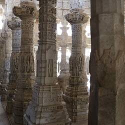 6.4.2025. We had a taxi organised through the homestay to take us to a temple and Kumbhalgarh Fort. A massive fort way up in some hills, 2 hour taxi ride from here. We're off, we're stopped. Driver pulled into the servo, thinking that would have been taken care of before picking us up but hey, it's India! We're off again, heading towards the temple. We arrived at Ranakpur Temple. Bought our tickets and visited. A massive Jain temple, look up the Jain religion if you're interested, I'm not going into detail. What I can say is they're strict vegetarians who believe in reincarnation. Holy moly, talk about carvings. The temple is spectacular. Apparently 1442 carved pillars holding up, let's say, lots of domes. Everything is white marble, carved by 2785 workers, and took 50 years during the 15th century. There is a tree there that is over 500 years old, a Rayan tree, and every Jain temple has one of these trees. Everything in this temple was carved, and no two pillars were the same. It was truly one of the most spectacular pieces of artwork I have seen so far. Anyway, we'd had our fill of carved marble and were off again, this time heading towards the fort. The fort is impressive, built up on a rock mountain, with a wall that starts and finishes at it. The wall is 36klm long, and is the second longest wall in the world, behind the great wall of China(which is over 21,000klm, so, ya know, close second). Anyway, tickets to buy, forts to visit. If you ever come to India there is something you will notice when buying tickets to see anything. They have an Indian price, and a tourist price. We have dealt with it for 5 weeks so far and it's starting to get to us, just a little bit. For the locals to enter, Rs40 is all you need. For us Rs600, and it's been like that everywhere. As I said, it's starting to get to us a bit. We're seeing the same bloody thing, plus we had to pay for our Visa's just to be in the country, oh and plane tickets. We felt like walking wallets in SE Asia, but I feel it's worse here. We still pay, obviously, not coming all this way to not see anything. Just getting a little pissed off with how unfair it seems. At home everyone pays the same price, standardised pricing, we all get ripped off, as it should be. No bloody extra cost just cause you came from further, if anything it should be cheaper. I won't make tourism Minister I'm sure. Oh right, the fort! Big, way up a hill, and a great view from the top. We could see where a bit of the wall went, over hills and around other stuff. We later tried to walk a bit of the wall, only to find most of it closed off, disappointing. We stayed for a sound and light show that kicked off at 7:30. We found what we thought were some good seats to watch the lights on the fort, everyone else sat the other side of a temple there. Hardly even used the fort for the light show, which seemed a huge mistake to me. At least we all payed the same price for the light show, oh right, nevermind. We sat through a kinda lame light show with a story in Hindi, because we thought at the end they would light up the whole fort, and Mel really wanted a picture of that. Nope, never did that, they kinda just turned most the lights off and we needed the light from our phones to help guide us back down. Disappointed, we walked back and found our taxi driver, vowing, no more light shows in India. Long ride back, early start tomorrow. Off to another destination for more adventures.