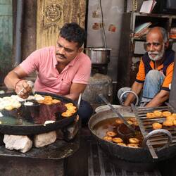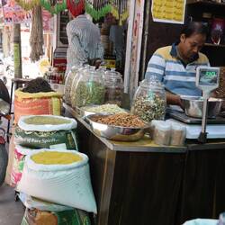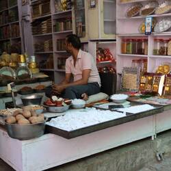 After that we decided to just walk in the streets of Jodhpur to get one last feel of it. The streets here are pretty narrow with shops everywhere; there are of course no big shopping centres, just a lot of small shops, each specialises in a few products: bangles, locks, sweets (we got some on our walk: delicious!), perfume, fabrics… and so much more. As Jodhpur has not a lot of water, the industries are not related to agriculture, but craft and you can see it in the shops around here. I am conflicted on my feelings about the streets of Jodhpur: one part of me is very overwhelmed by the noise, the crazy drivers that you need to avoid every 5 seconds, the rubbish and dirty streets; but part of me love the atmosphere; it is so lively, full of colours, smells (good and bad), there are small temples everywhere and you often see someone stopping for a few second for a quick prayer. I loved just observing all those lives around me and feel like I could do that forever!