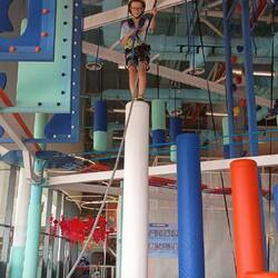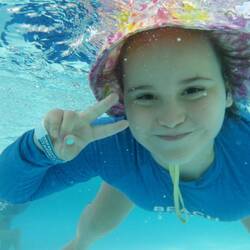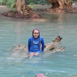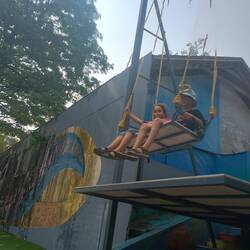 On the 7th we did some schoolwork and blog. Then we went out for lunch. We went to a place that was called The garden café. It was lovely. It had plants everywhere. Then we went to a park that had canoes, peddle boats, swing set, playground, rope bridge, (which I had a melt down on) and a zipline. I refused to go on the zipline. I tried the rope bridge, but I failed badly (mum edit: but she tried very hard and we are very proud of her for trying). After that we went down to the beach for a swim. We got sandy and disgusting. We played for about three hours. I loved it so much.