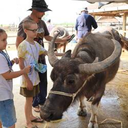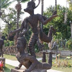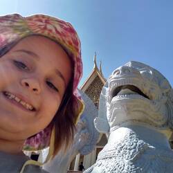 On the 13th we played on our computer then we did our blog till nearly lunch, then we got a tuktuk to a temple. The temple was on a hill, it was a long drive from our hotel, and to be honest, the temple wasn’t really worth it. We came at lunch time and the temple was closing soon, so everyone was rushing, there was lots of people, and we were being rushed, so we didn’t see much at all. It was in, look for 0.01 of a second and then out. As I said, it was lunch time so we had to get some lunch. When we went to lunch, we didn’t know what we picked, when we got our food, it turned out it was rice with stuff in it. We ate it then went to find stuff to do. After we finished we searched up stuff to do near us, dad found this cow statue thing, we didn’t know what else we would do so we went there. The path to go there was long and had lots of monkeys, especially at the statue, when we got there we looked at the statue, it was huge, like 100 times my size, it was ginormous. After that we went back to hotel to sleep, and sleep is what we did.