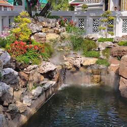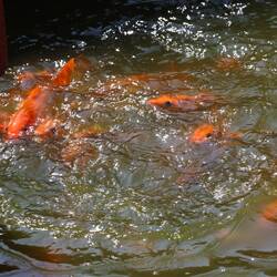 They were big rocks that had a lot of ancient writing on it. The place had a pond and me and my sister were feeding the fish. There was about thirty huge gold fish swarming me. It was crazy.