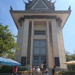 7.1.2025. This morning, we rode in our first tuk tuk. Very exciting and scary. If you know Cambodian traffic you know what I mean. Our destination? The Killing fields. Where we learnt of Pol Pot and his regime. Saw mass graves, bones, skulls, teeth and scraps of clothing. We learnt of things carried out by members of the group the Khmer Rouge through a headset as we walked around the site. Some truly chilling things, things you wouldn't believe people could do to others. I understood perfectly my feelings this morning. Sadness, revulsion, confusion and utter disbelief.