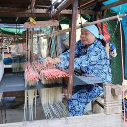 Only woman wove and each woman know only one pattern. It is passed on inside the family. They will only learn that one pattern and do the same one as long as they work there. It looks very complex: they have one “pedal’ which does the background color and several “pedals” who do the design. The women working there are so use to it, that it looks easy but I’m sure it took a while to learn!