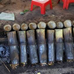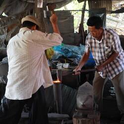 The morning was spend going around the smaller villages around Battambang where we saw different type of livelihood: a blacksmith, someone making sticky rice, banana chips a lot of different way (barbecue, sundried, fried…), rice paper. We tried a lot of those different food (Yum!). We also visited a couple of temples and some killing fields. They are everywhere here in Cambodia.