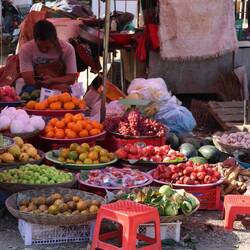 Battambang is the second biggest city in Cambodia, but it looks less busy and less crowded than Phnom Penh. After a warm shower, we took a stroll into the area. This is one of my favorite things to do. I love people watching, take on the smells, the sound, the colors of an unknown area. It seems than in Cambodia, there is food everywhere you go. Carts, little restaurants, street sellers, selling all kind of food and other items. Money is constantly being exchanged!