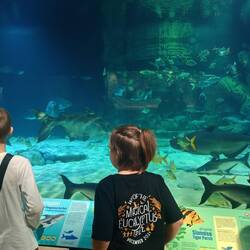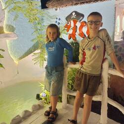 Andrew being crazy about fish, we followed that visit with the Aquarium. It was better than the zoo, but just. Again, there was a good variety of fish, but some of the tanks felt a bit too small for the massive fish inside. I know less about fish behaviour than other animals, but still…It didn’t seem completely right to me. The kids enjoyed themselves and found a “pet” fish friend, that they called Dooby, that they follow around the tunnel for a bit and it was funny.