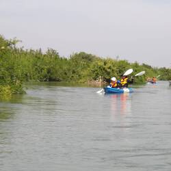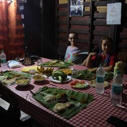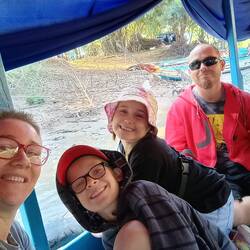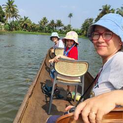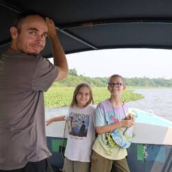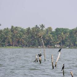 9.3.2025. Today we got up a bit earlier and made our way to Kumarakom Bird Sanctuary. Rode a Tuktuk to a ferry terminal, then ferried across the lake to the sanctuary. Payed our fee and off we went. We could hear birds, spotting them was another matter. They have three watch towers, only one is accessible towards the end of the walk. Went up it and saw some nesting storks. We made our way back to the entrance. It was nice and the kids had fun, but, we saw bugger all. For a “sanctuary”, it was not maintained great and there's lots of rubbish. We walked across the street and had a nice lunch. I'm really starting to like chicken biryani. We went back to the sanctuary as we had seen they do boat rides as well. Hopped into a boat and set off. We had a look around the lake and saw so many birds. We were hoping to maybe see some Otters, but that didn't happen. The guide pointed out lots of different birds for us, answered our questions and generally made it a nice ride. After the boat trip, we made our way back to the ferry and waited to board. Back at the room, shower time then head out for dinner.