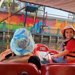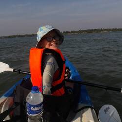 On the 6th we visited the light house and boy did it have lots of steps. I thought I wouldn’t make it, but I surprisingly did (For your information there was 105 steps). At the top of the lighthouse, we could see the train tracks, the boom gates, houses and the river. It was beautiful. We saw two trains passing through. After, we went and played on the playground at the bottom. There was a swing set, a slide, a spiny thing and a seesaw. Andrew and I had a match on who could stay on the ground the longest and I won. Then we went back home and relaxed a bit. After a while we had a tuktuk take us to a boat place because we had booked a boat ride. Me and Andrew got a job where we got a paddle to push the leaves away. It got boring in the end. So, Dad gave out the goggles. We spotted a few birds; we saw king fishers and woodpeckers. They were beautiful. We saw billions of rice plants. It was lovely.