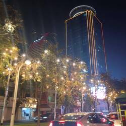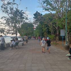 We walked along the river front and was pestered into taking a ride on “party” boat. Lots of lights and loud music. Was pretty fun.