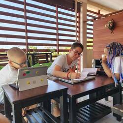 One of the things to learn when you travel, is to convert money. Here in Cambodia, it is a little more complex: the money is Riel, but they also take US dollars. 1 US dollar is 4000 riels. But when you pay in one currency, you can receive the change in the other money. And then, we have to add around 30% on the top to have the value in Australian dollars! It is a very good math exercise for the kids (and us!!!).