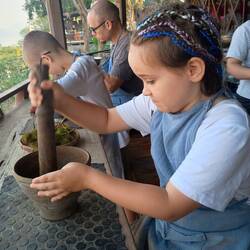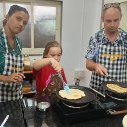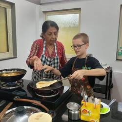 Wednesday was cooking class day. After Cambodia and Laos cooking classes, we wanted to try Indian cuisine class! It was a great day. Except that when we arrive, they were surprised to see us. I said that we exchanged by email a few days ago to book the class: Yes the lovely Rita said (the owner of the place), but you booked for April not March! And yes, I checked my emails and I did write April!!!! Anyway, they were super nice and ask for 30 minutes to prepare, while providing us with snacks, tea and coffee. We received a short lesson about spices (there are soooo many!) and how to prepare a masala tea, which I was very happy about as I developed a taste for it since we arrived in India. We then started cooking: we prepared a mint and coriander chutney sauce to eat with samosas. We learnt how to do the dough for the samosa, for the paratha and the poori (2 types of flat bread) and how to cook them. We cooked butter chicken and tofu chicken for me. We did a desert named Kheer, a type of Indian rice pudding. It was fun, delicious, interesting. The kids love this kind of hand on experience and are more and more keen to do things by themselves. Cooking classes are becoming one of my favourite things to do when traveling: not because I like cooking (because it is not really my thing) but because the kids love them and really get into it and learn from it. We obviously ate after cooking, and it was delicious! We are pretty good cooks when we are told what to do!!!