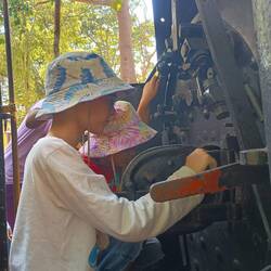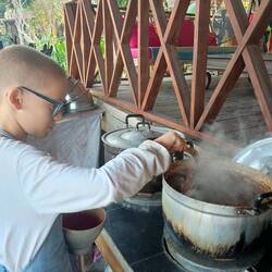 8.3.2025. Visited a couple museums today. First one is a private collection, accumulated through three generations of the same family. They made their money through exporting coir products. Coir is what they call coconut husk here. They separate it, spin it and then weave it or use it in looms. This museum had nothing to do with coconuts, just a huge collection of antiques, paintings and artwork from around the world that this family had acquired over the years. Amazing what you can do with money. The next museum was a museum about, don't spill your drinks, coir making and it's history!! We learnt about how it first was made and the advancements made in the technology through the many years. Was interesting to see how they made improvements to the process. I watched the kids as they checked out the machines, trying to understand them and tell me how they thought they worked. I have pretty cluey kids, sometimes. We wandered around the museum, stepped through a door and we're in a huge room with 15-20 looms and other equipment. We had a look around, quickly working out that they were all still in use. We assume nobody was there working because it was Saturday. We weren't sure we were supposed to be in there, but we were gonna check everything out we could before we got kicked out. Nobody came to get us, pretty sure they didn't really care where we went in the place. Safety is not a top priority here, WHS would lose their shit. We found a small house inside that was pretty much made from coconut. Pressed husk makes boards for walls. Husk in bedding and pillows. Think that's enough about coconuts today. Back to our room, aircon on and relaxing. Dinner later, another day done, that's it.