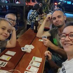 17.3.2025. We got to Udupi around 11am. We had been using uber to order Tuktuk's and taxis, doesn't work here yay! Went to a prepaid taxi rank and got to our room. Organised with the driver to pick us up tomorrow and take us to a heritage museum. Checked out our room, looks ok, a bedroom with a huge bed two small beds in the living area and bathroom. Bloody hot, we're right on the top floor and the sun here is brutal. Fans are on flat out but there's stuff all windows, so it's still bloody hot. The main bedroom has an aircon, guess we're all sleeping in there. Went for a walk later down to the beach. It's nicer here than in Allepey, the kids played for ages in the water and sand. After that we found some dinner, played some games and went back to the room.