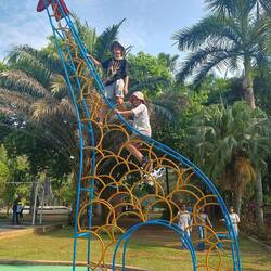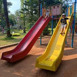 14.3.2025. Mel wanted to see St. Philomena cathedral, so we went and had a look. A newer cathedral, built in the 1930’s. Still don't know who St. Philomena was or what they did, might look into that one day. I found The Regional Museum of Natural History just looking around google maps, we decided to have a look. Nothing else doing today and it's only a 35-40 min walking distance, we set off in foot. Not sure how many Tuktuk’s we turned down, but it was lots, and one guy would not take the hint. Know it's how they make their money, but it seems if they pester you enough you're going to give in. Nope just kept on walking, he eventually buggered off. We stopped about 2/3rds the way through our journey, hunger was setting in and there was a nice looking restaurant on the side of the road. We ordered some dosa for everyone, a different fried flat bread with some dips. Emma's was stuffed with potatoes, Mel's was like a wrap with potatoes and stuff inside and mine had onion fried into it and placed atop a small pile of potatoes. Andrew just had plain dosa, which he enjoyed. I tried everyone's, they were all good but I think mine was the best. Back on the road, 10 more minutes of walking and we had found the museum. Free entry, bonus. We didn't know what to expect here, all of our searches of “things to do in Mysuru” not once had this museum came up in a list. Well, what a nice surprise. The displays, while maybe a little old were well put together and had lots of information in English. It covered rivers, mainly the Cauvery, one of the sacred rivers. It covered lots of animals, including a giant squirrel species we didn't know existed. Lots of info about the different types of environments. There was lots of pictures of Indian tribes that still exist today and how they dress. Finally there was an exhibition on how the world started, from being a ball of hot gasses to becoming a planet. A timeline and information about all the periods in time and the animals that existed during that time(Jurassic eg.). It was an interesting museum, and needs to be advertised more as a place to see in Mysuru. I found there was a butterfly park next to the museum, so afterwards we headed there. There was a gate near the back of the museum we headed through (found out later we were supposed to pay to enter the park, oh well). We found ourselves on a nice path through some forested area near a lake. We walked along and found the butterfly park, on a small island we accessed with a small bridge. Flowers and of course butterflies. We saw many other plants and animals on the small path around the island. There was an aviary and playground on the other side of the park, so we walked for a bit. On the way, Andrew saw there was a watch tower. As we were walking towards the tower, something crossed our path a little further up. Something that I thought looked like an otter at first, but it's tail was bushy. We got closer and had a slightly better look. It's a giant squirrel!! We just found out and read about them and now we've seen one!!! We knew it was not a regular squirrel as we've seen hundreds of those, maybe thousands and it was 5-6 times larger. It disappeared into the forest and we climb the tower. Once up the tower we saw another giant squirrel!! Lots of birds too, but that couldn't compare. We found a nice place to sit and rest a little, it was nice to get away from people and the noise for just a little bit(even with two kids). We enjoyed listening to the birds and the wind in the trees. Also we saw a monkey!! It wasn't that close so everyone was ok. We kept walking around the lake and found a fenced area for peacocks. The zoo should take note, this aviary was huge, at least 15m high with lots of room for bigger birds to fly if they wanted, the big birds in the zoo were basically in a shoe box compared to this. We found a nice playground where the kids used their muscles for an hour or so. The playgrounds in India are pretty good(when you can find them). Slides, swings and monkey bars. There was a rope bridge obstacle course the kids liked most. After all that, we left through the front entrance (without paying) and tuktuked it back to the room. Played some games while we rested, then later went to a cave themed restaurant for dinner. A good day.