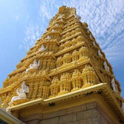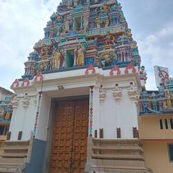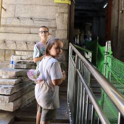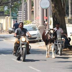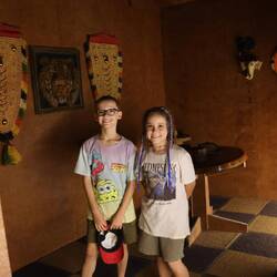 13.3.2025. Lazy start to the day. Blogged a bit, kids played on their computers while we tried to plan a bit for Africa. Around midday we'd had enough of being inside, so we tuktuked it to a temple on a hill. Sri Chamundeshwari Temple to be exact, had to copy and paste the name. 1062 metres above sea level. Not a huge temple inside but a pretty big decorated, ornate front part. Andrew saw a cow lightly headbutt someone to get them out of the way. He was already feeling a little uneasy about big animals after almost getting his foot stepped on by a buffalo in Laos, this didn't help. Wasn't sure what to do at the temple, lots of stainless steel fencing around the front. After storing our shoes and walking across the hot road, we found the way in. Busy inside, didn't get the chance to see much as it was rush rush and we didn't want to get in the way of the locals who actually visit to pray or be blessed. The fencing pretty much led you through a part of the temple with a bit of a squeeze, get your blessing and out the door. We figured out it may have been a bit more busy because it was closing soon, so people were in a bit of a hurry. No problem, I had a quick look and went through. We walked around the other side for a photo of the temple then made our way back out the fencing. On the outside there was this guy dressed up in some stuff, I dunno feathers and colourful fabrics, bonking people on the head as they passed. Bonked all of us as we passed even though we all tried to avoid him. Anyway that madness had passed, now it was time to eat something. Found a small restaurant on the hill and ate “Thali meal”. A selection of small sauces with rice and poppadom. We added butter roti (fried flat bread) to our order. Delicious, the kids had some rice or something idk. Our bellies full, we went for a walk. Down some steps, around the hill and found a huge cow statue. Also found monkeys, you know how I feel about monkeys, I don't like them! Weird little long legged rats with big teeth, and people feed them so they expect food from everyone. Signs around the place about pickpockets and monkeys. More worried about the monkeys. We made our way back along our path and back up the stairs. Not sure if it was the full belly or being 1klm up, but we all struggled a bit going back up the stairs. Was hot too. Found a shady spot to rest while we looked at Google maps to see if there was anything else to check out. Nope we're done with this hill. Ordered a Tuktuk (uber is good for that here) and went back to our room, where Mel came up with the idea of a drawing contest. One which some of you recently voted on, or voted for all of them because you couldn't decide, talking to you mum! Watched a bit of tv, kids are liking Blown Away on Netflix. We tried Indian tv, but that didn't work.