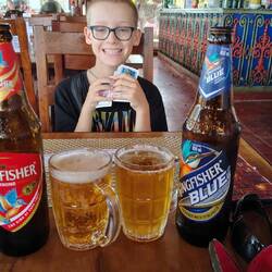In the evening, we find a nice restaurant to celebrate Kev’s birthday one day late. We enjoyed some good food and the local beer, called People; this is only sold in Goa and is really not bad. We also tried the local spirit, called Feni, made of cashew apple (If you don’t know what it looks like, check it out!). For me it tasted a bit like Calvados (for those who tried it): I liked it! I’m not sure Kev liked it too much.