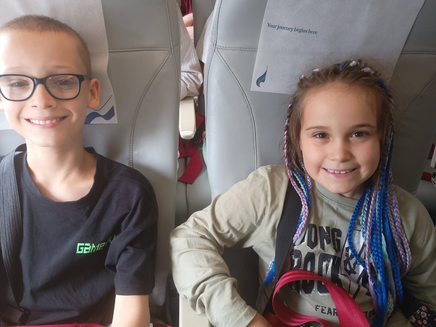 Andrew is happy and excited. He is looking forward to trying different food. He loves going into plane because he loves watching the lights outside the window plane and he can watch a lot of movies!!!