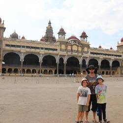 Anyway, to go from Alleppey to Mysore, we took our first Indian train, and even better, our first Indian night train. I was apprehensive, as I’ve read some bad stories about train in India, but you know what? It was easy as! We got to the train station early (because I am always early everywhere), check that the train wasn’t cancelled (just in case), and where the wagon was going to be on the station, as you only have a few minutes to get in, so no time to run the whole length of the train when it arrives. We waited a bit in a paid aircon waiting area (because it is hot, it is India after all!). When the train arrives, we were exactly where we were supposed to be, hop in the train, find our seats. Well it is not really seats, as it is a night train. There are 3 sleepers (a low, middle and top one). The top on is always open, the middle one is down during the day, so people can sit on the lower one. We had 2 middle and 2 top ones. After eating our dinner and agreeing with the couple that had the 2 lower sleepers that it was time to lay down, we just needed to lift up the middle bed, hang it from the top sleeper (I’m not sure how to explain that part) and we were ready for the night. The kids were in the 2 top ones, and they loved it. Kev and I were in the 2 middle ones. We got given bed shits, a pillow and a blanket, so got ourselves comfi, read a bit and after a little while got to sleep. I didn’t feel the train moving that much. Sometimes there was a bit of a rumble but not that much. A few people were snoring around, but honestly, the experience was so much better that I had imagine! We were on the train until 11am, when we finally arrived in Mysore.