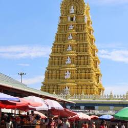 The next day was another type of experience. I’ve seen picture of a Hindu temple on top of a hill that looked really nice and I wanted to go and visit. We did. Took a tuktuk, he dropped us at the bottom of the hill, we had to go through a maze of small market type alley full of small stands selling everything and anything. A lot of people were there pushing their way pass. We wrestle our way following the crowd, assuming they were going to the temple. We arrive at the temple: it is called Sri Chamundeshwari Temple. It has a beautiful tower with a lot of statues representing diverse deities. We decided to go in, but maybe we shouldn’t have. It was overcrowded and you need to follow the line, a bit like in Disneyland with the rails on each side, and for some reason, we had to rush, everybody was rushing. We got 5 seconds to see the inside and we were out! That was it. We still had no idea why people were such in a rush, maybe that is what happen in Hindu temple, we are still not sure!!