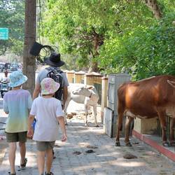 We have all heard about stories of cows walking around in India, but until now we didn’t see it that much. Here in Mysore, there are cows everywhere, walking in the middle of the traffic, laying down on the side of the road. We even saw one that just gave birth on a side road. Andrew is not super comfortable waking next to them. As he says: “I love observing the animals, but not from too close!”. Emma is more scared of the dogs, which are everywhere too, as we got barked at a few times when we were walking around. It makes our walks even more interesting!